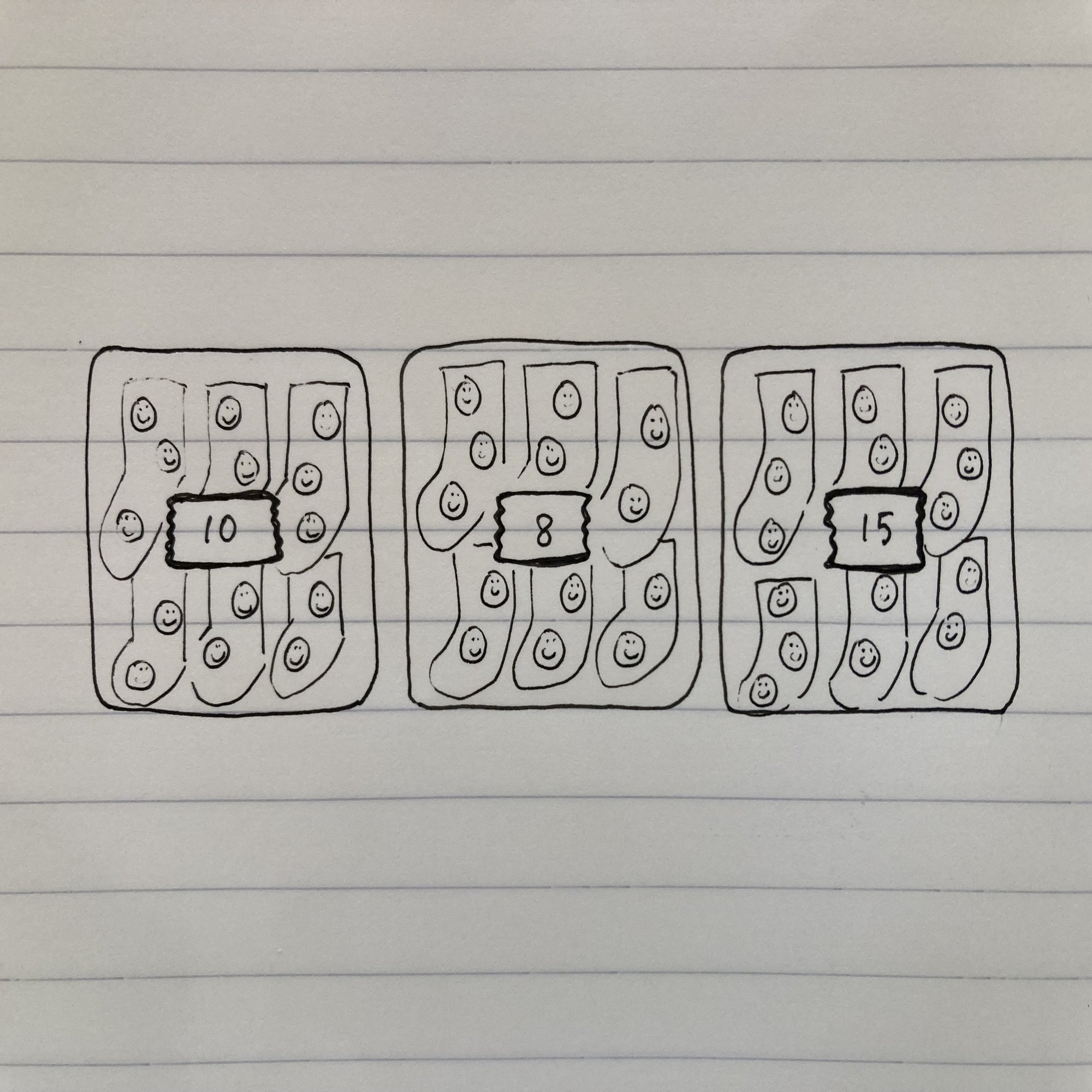 袋の中身の数を揃えた方がもっと楽なことに、今気付いた…今はバラバラだ。来月やり直そう。