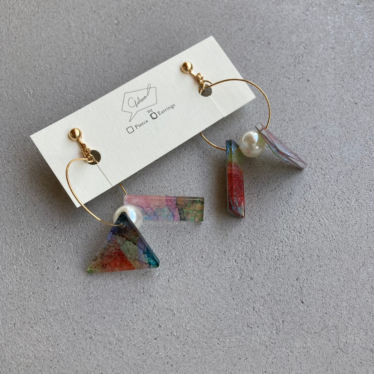 しらたまをさんかくとしかくでサンドしたフープピアス。