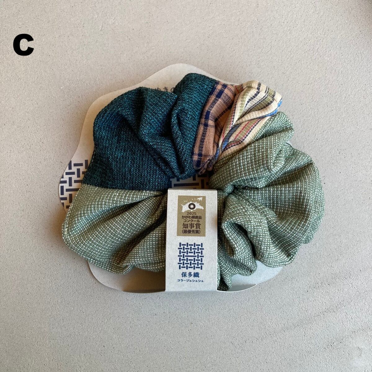 配色が可愛い保多織のシュシュ。