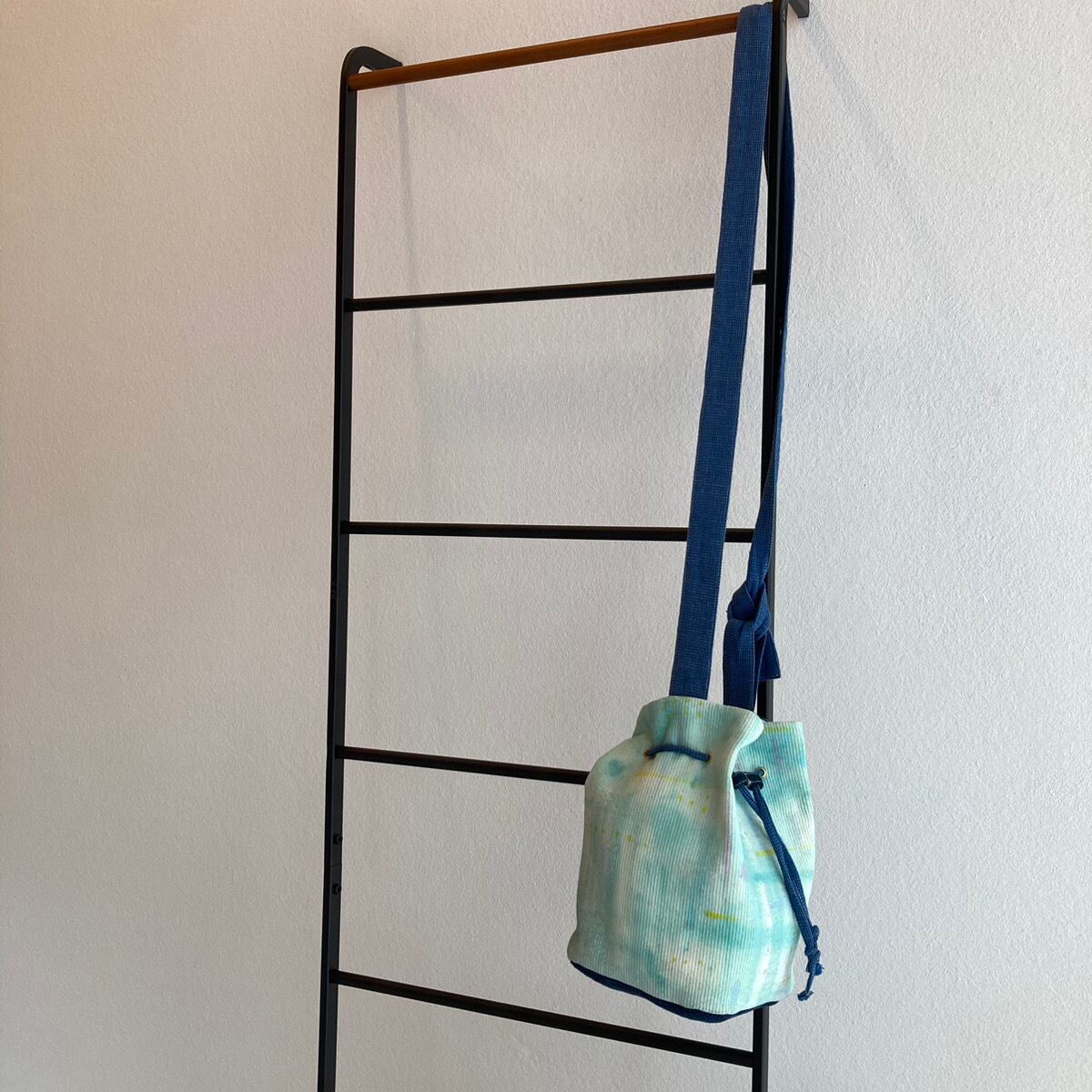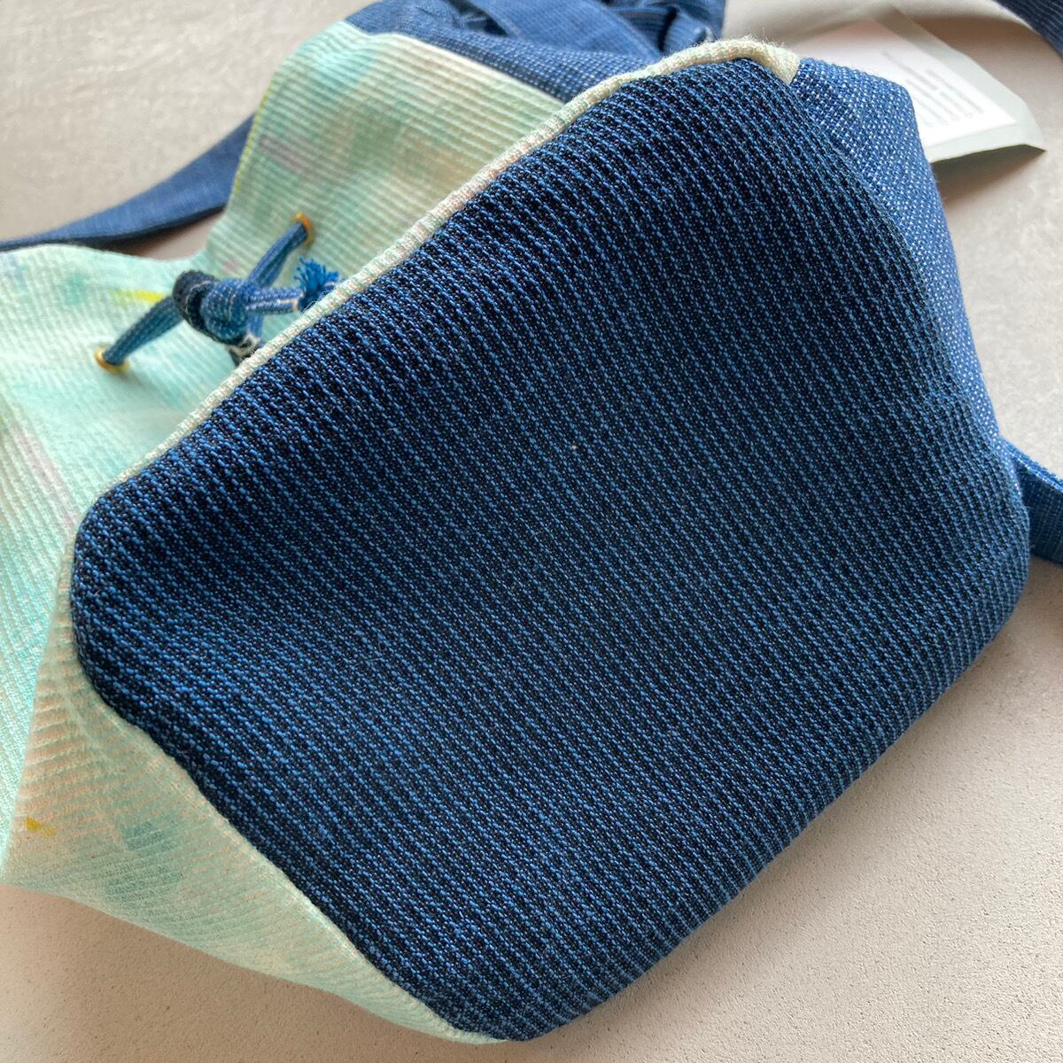 四面あるうちの一面は、肩紐と同じブルーの生地です。