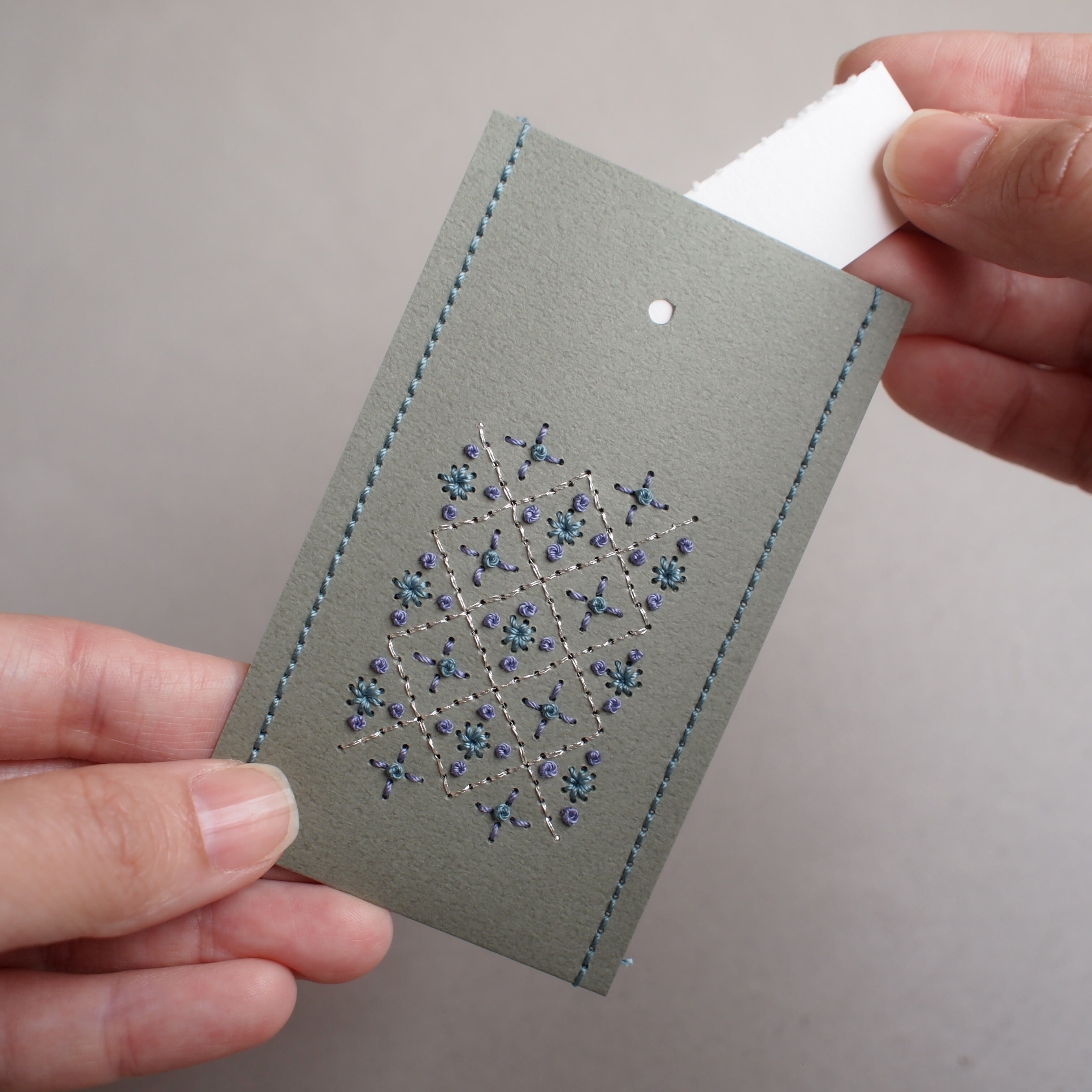 「想いを添える」をコンセプトに、埼玉県飯能市を拠点に、紙と紙刺繍という技法を使ったものづくりをされています。「日々の中に馴染みのある紙だからこそ表現できる”あたたかみ”と、”紙に刺繍をする”という技法の新鮮さを、ぜひお手に取って感じていただけたら嬉しいです。」と、作家の小針さんは仰います。