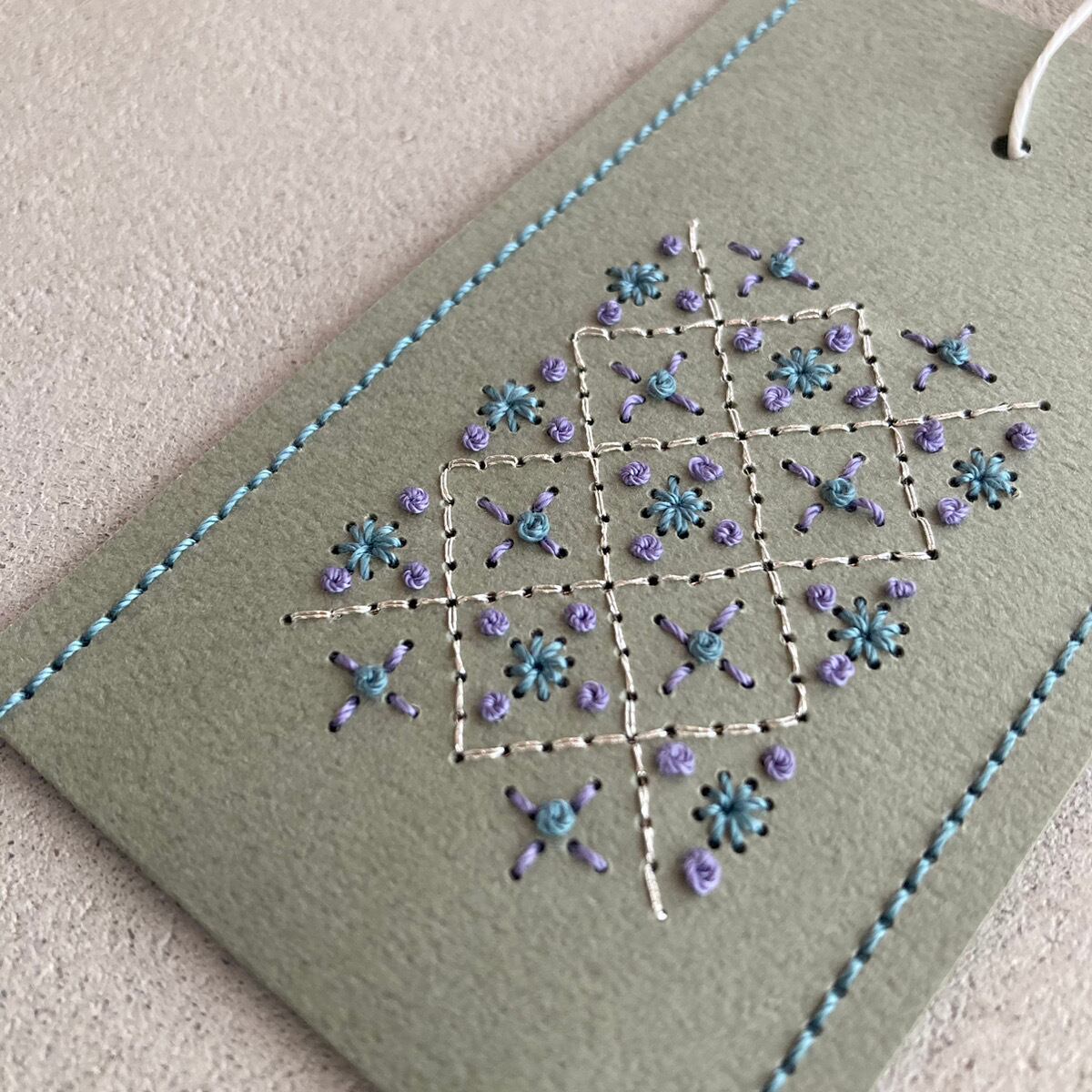 ひとつひとつ紙に手ぬいで刺繍を施した、