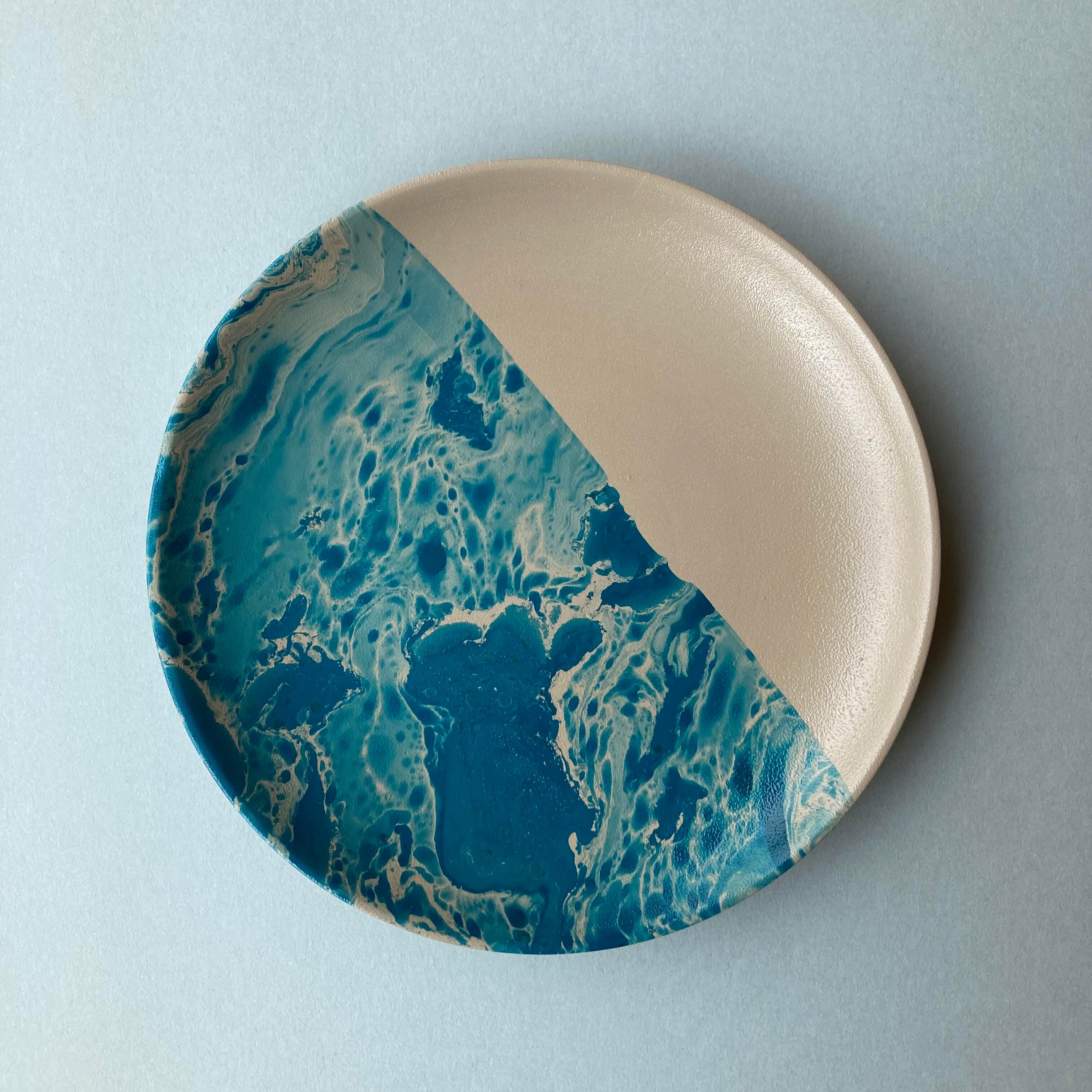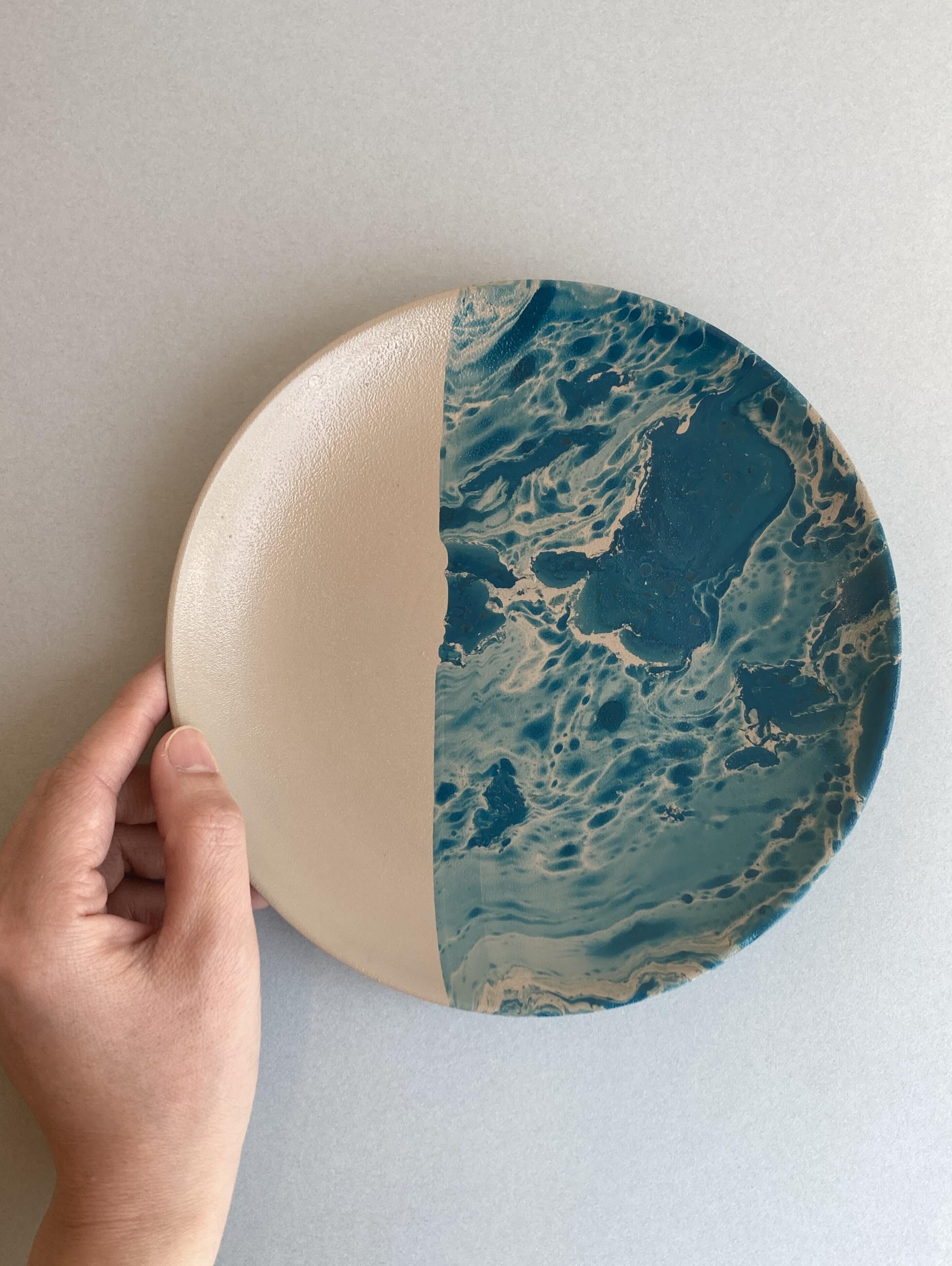 ブルーとベージュのコントラストが美しく、飾っておくだけでも絵になるお皿です。