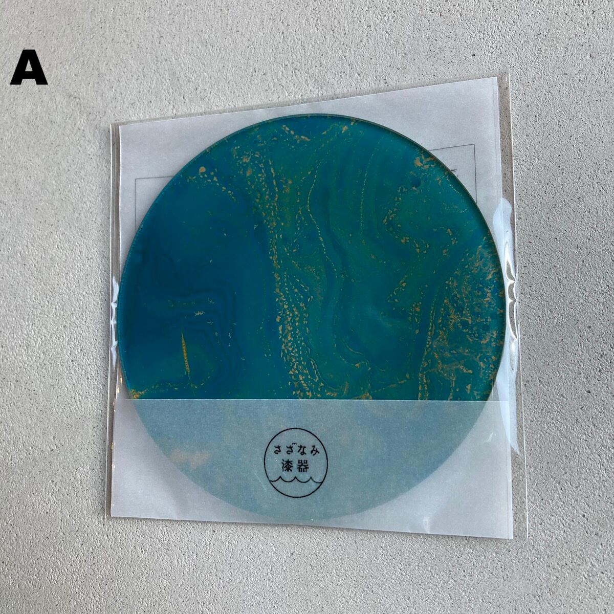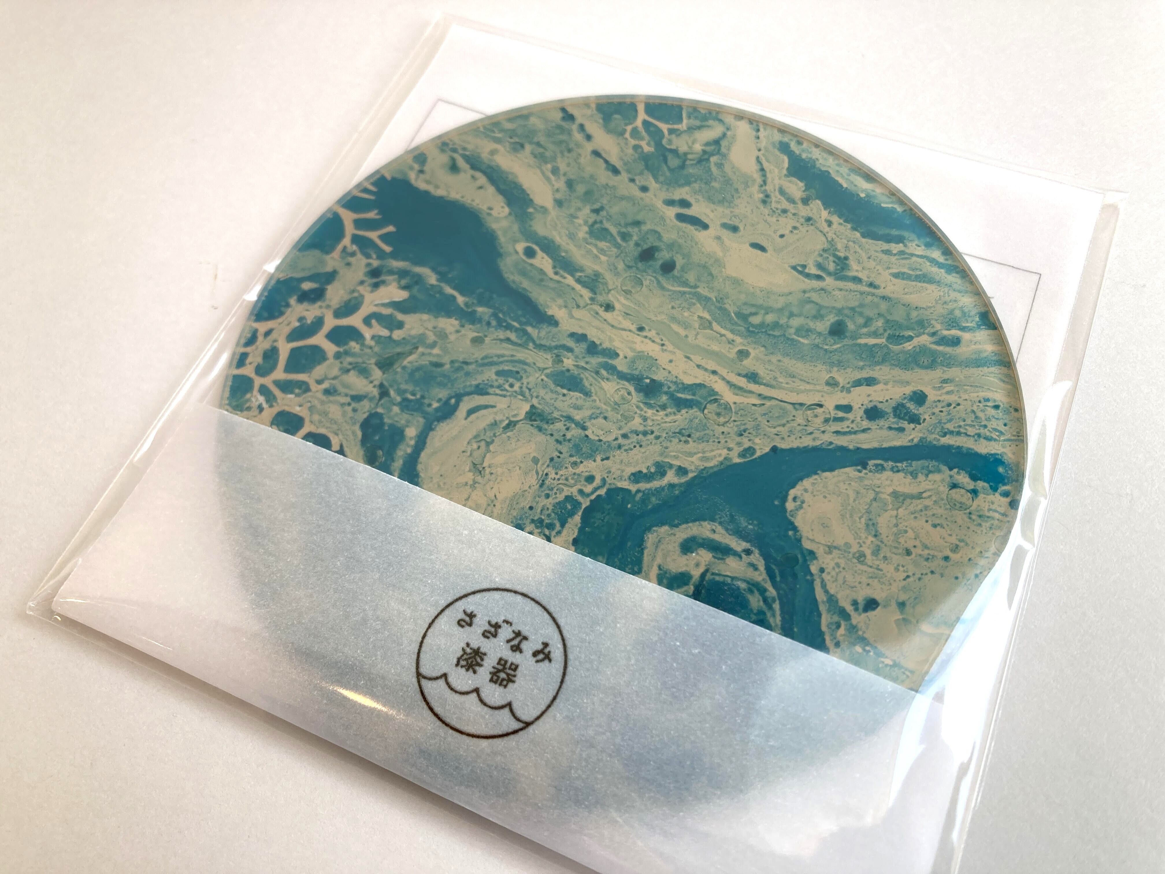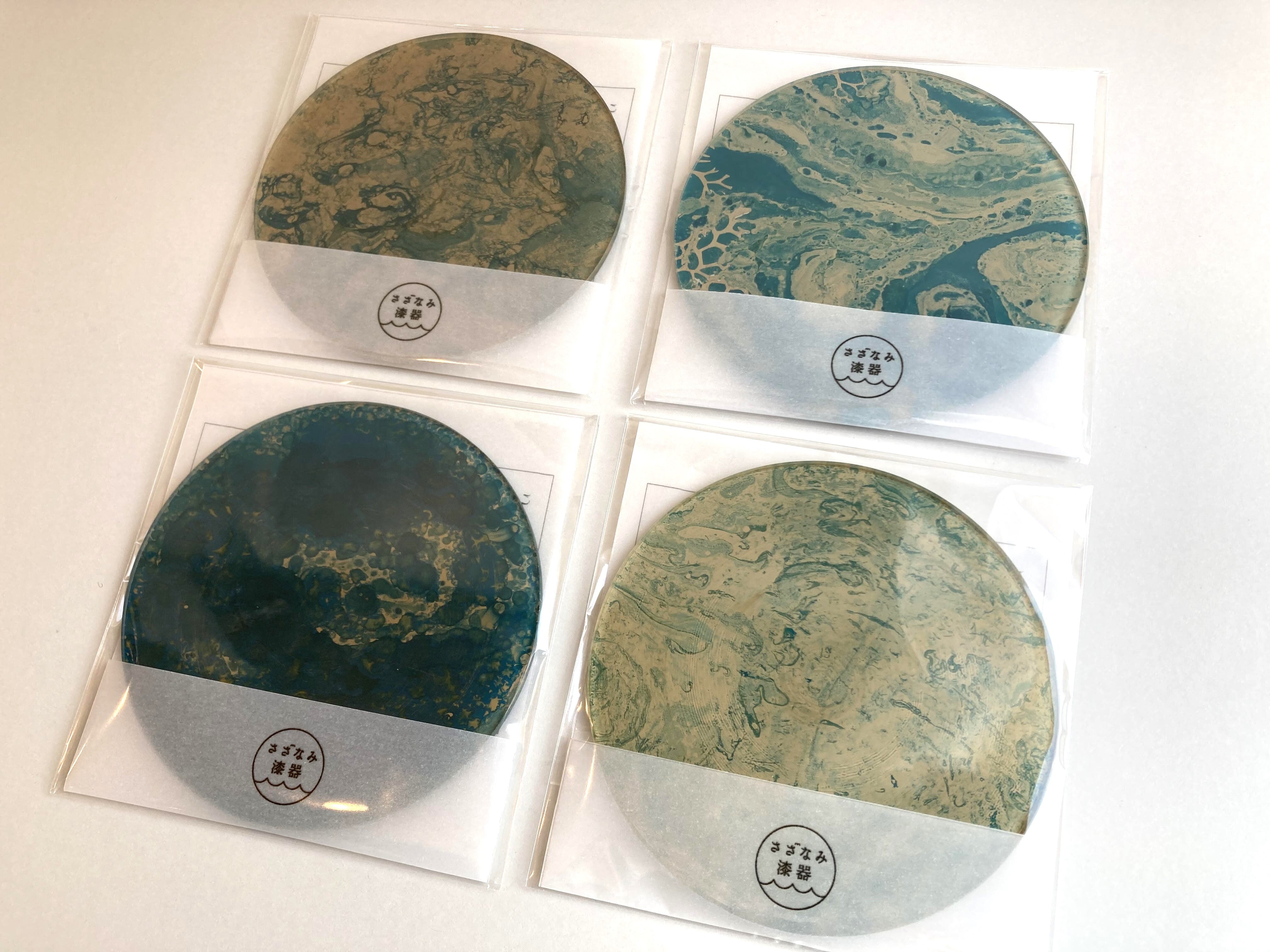 漆で墨流しをおこなった後、白漆で仕上げたコースター。