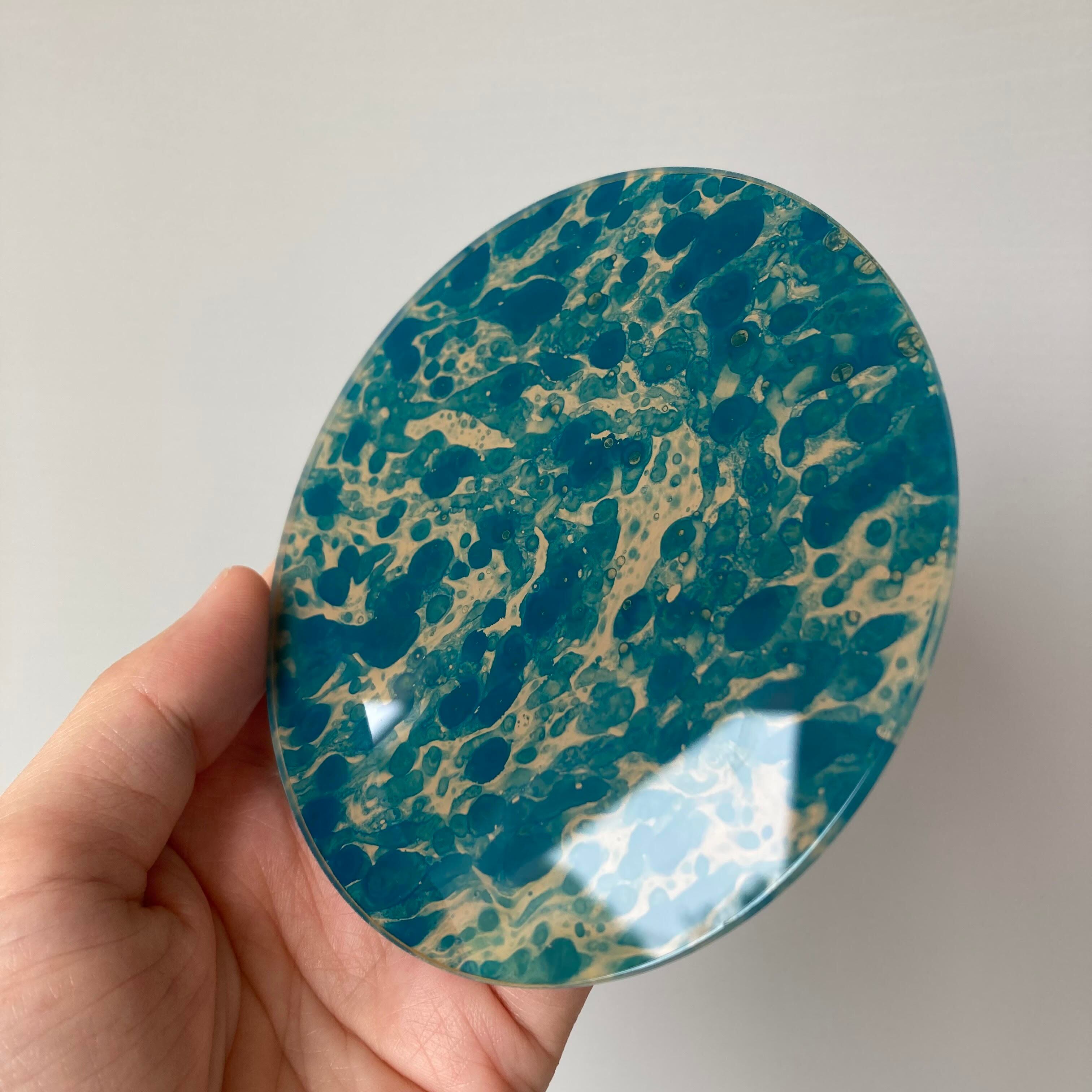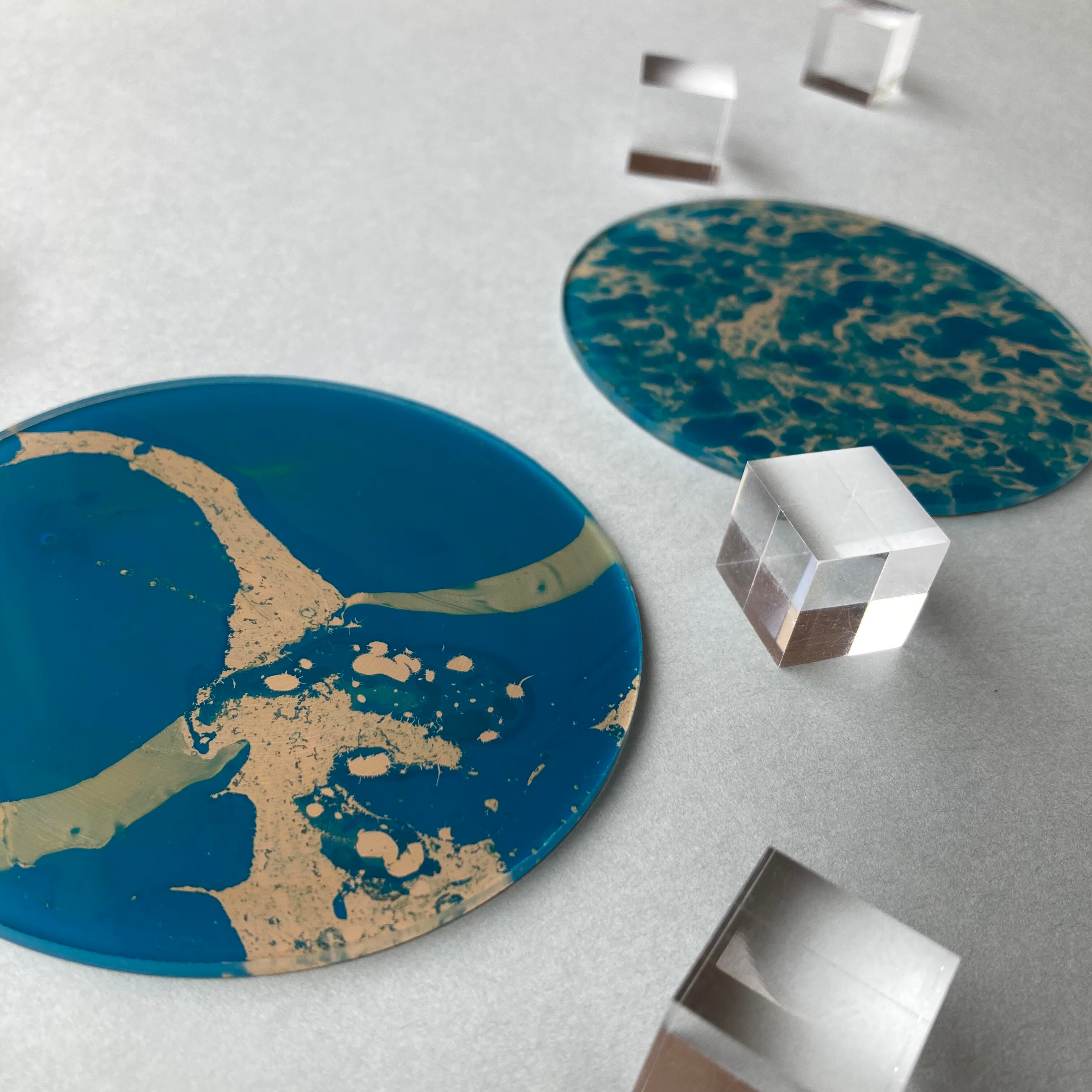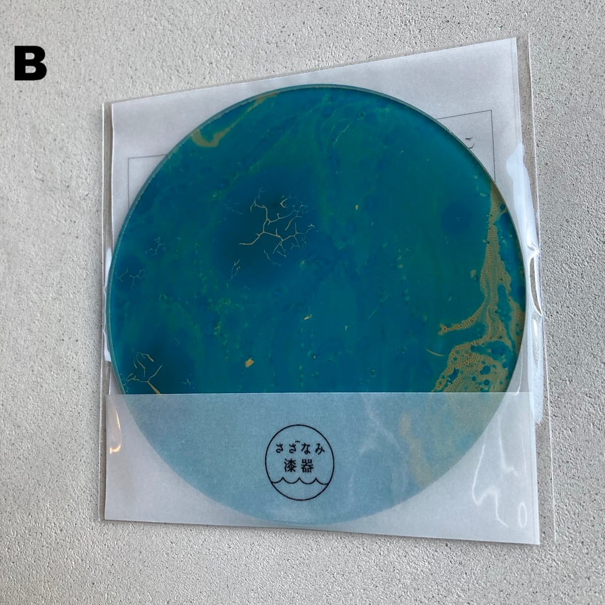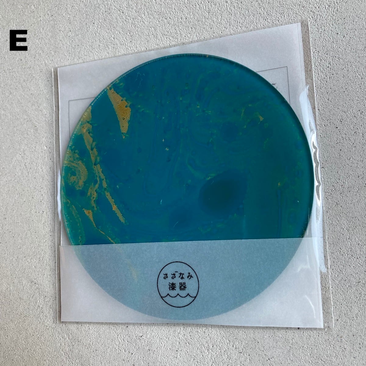 漆で墨流しをおこなった後、白漆で仕上げたコースター。