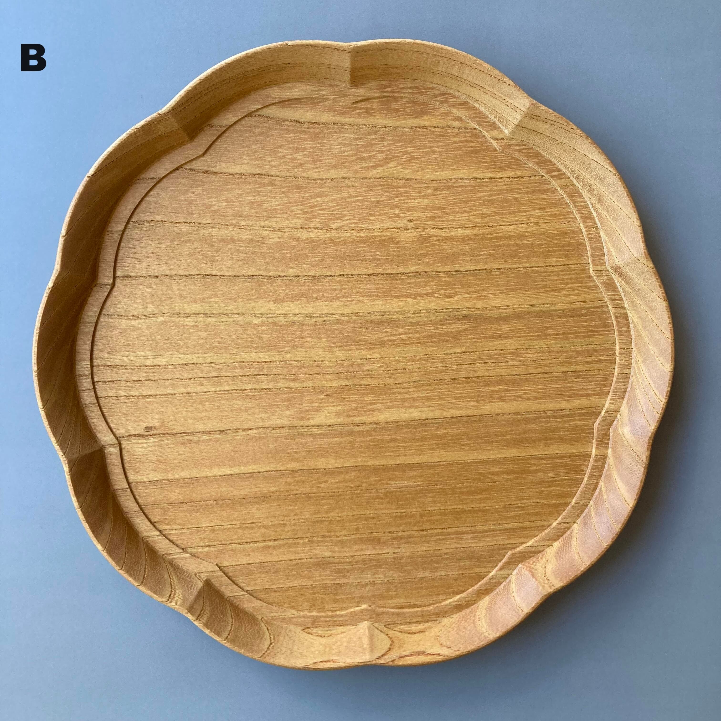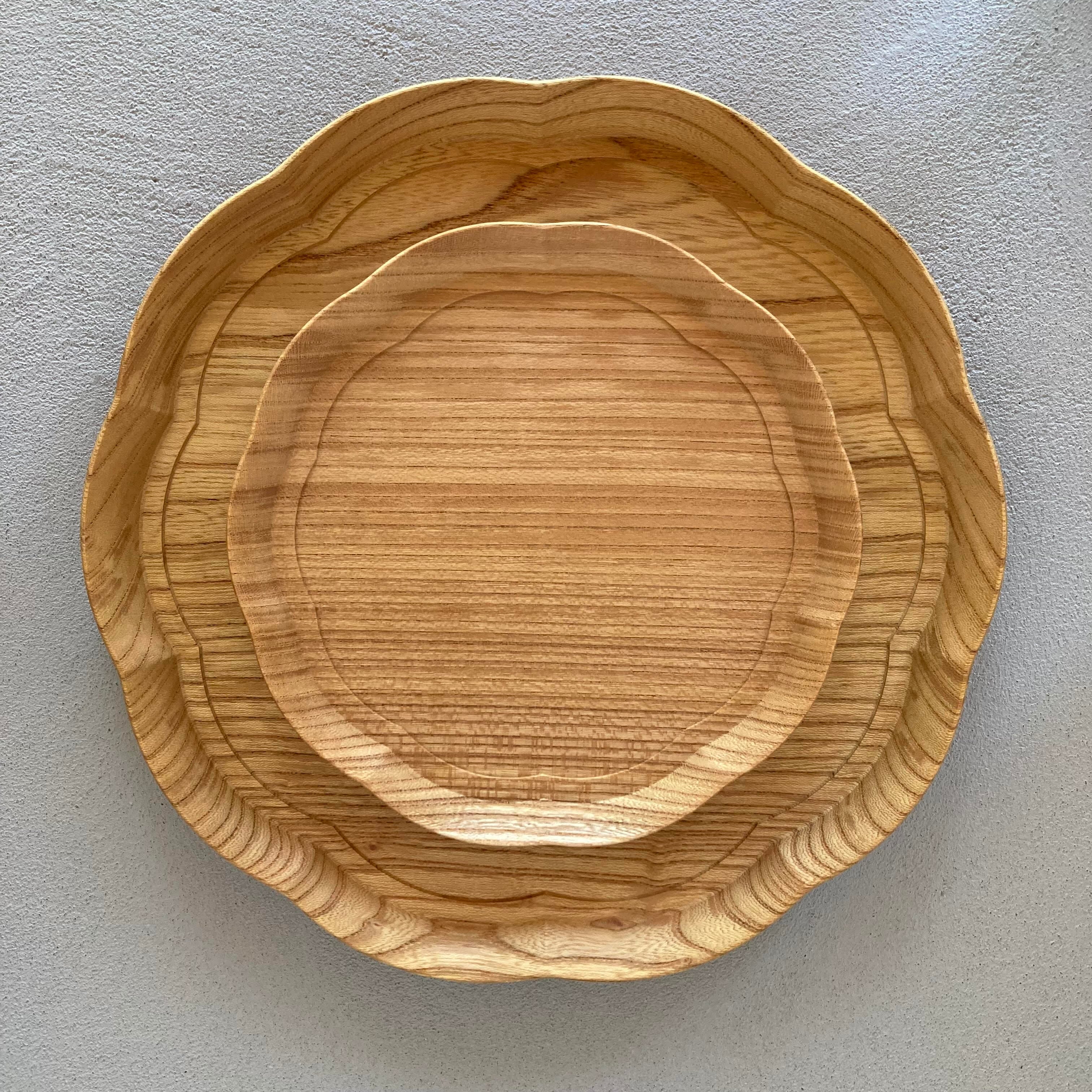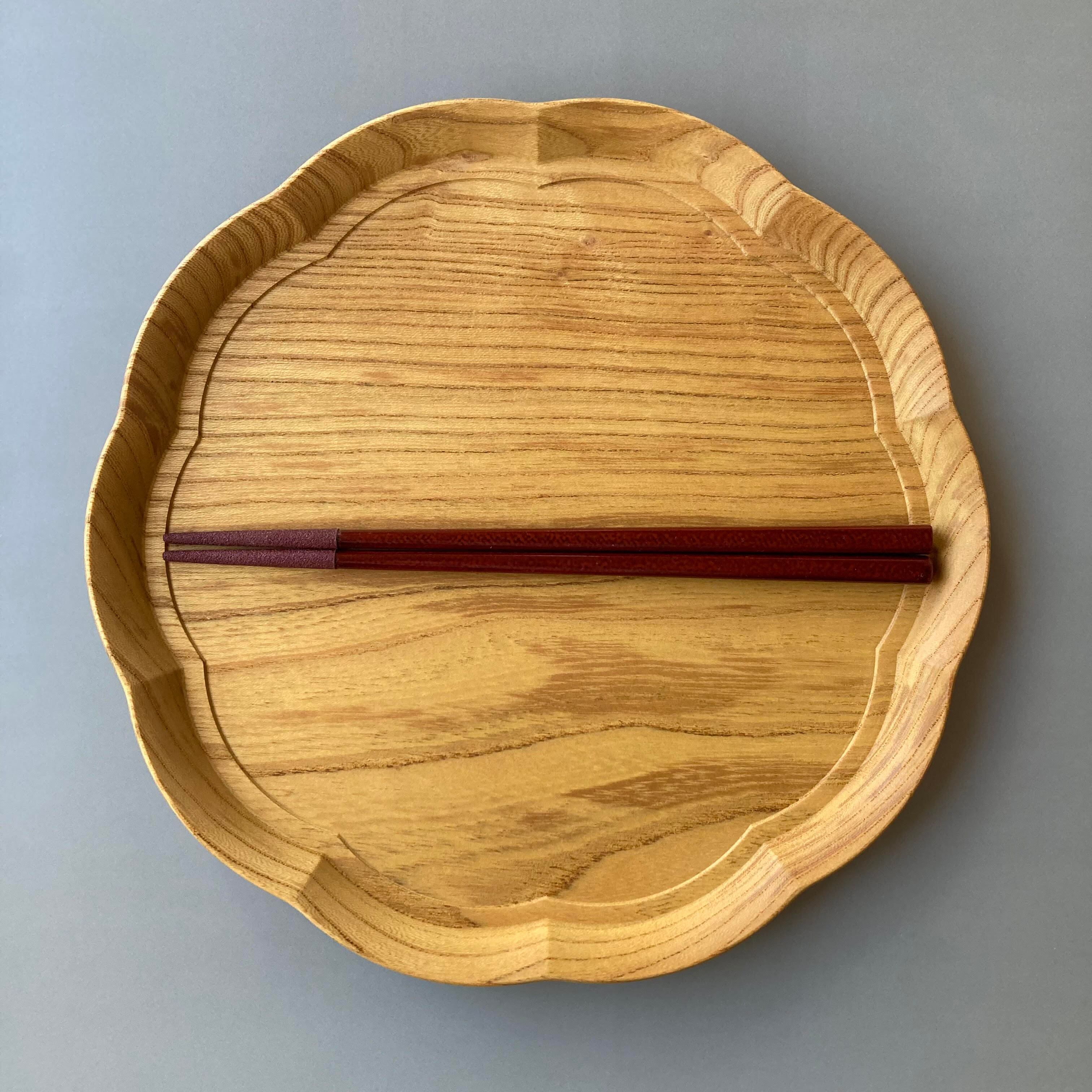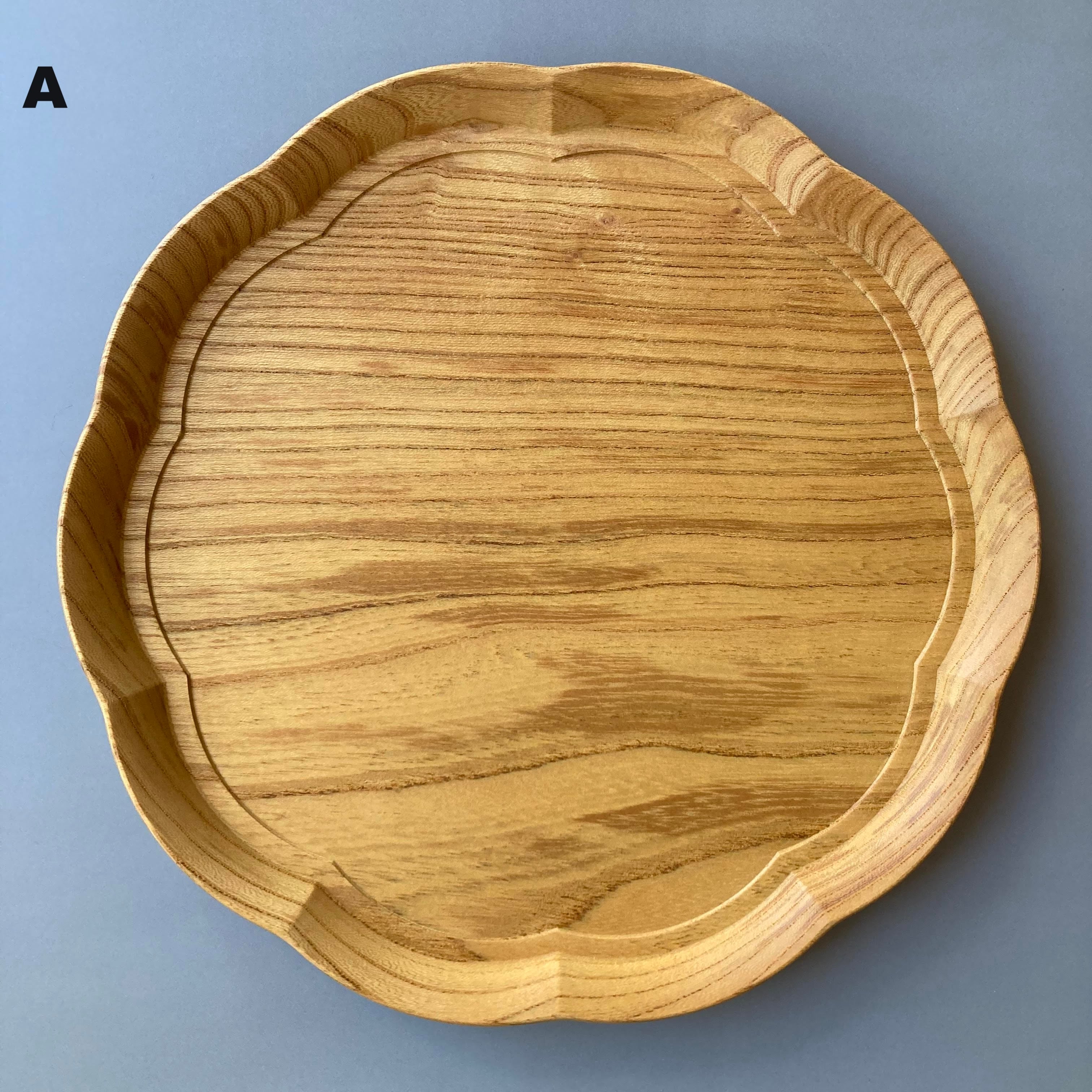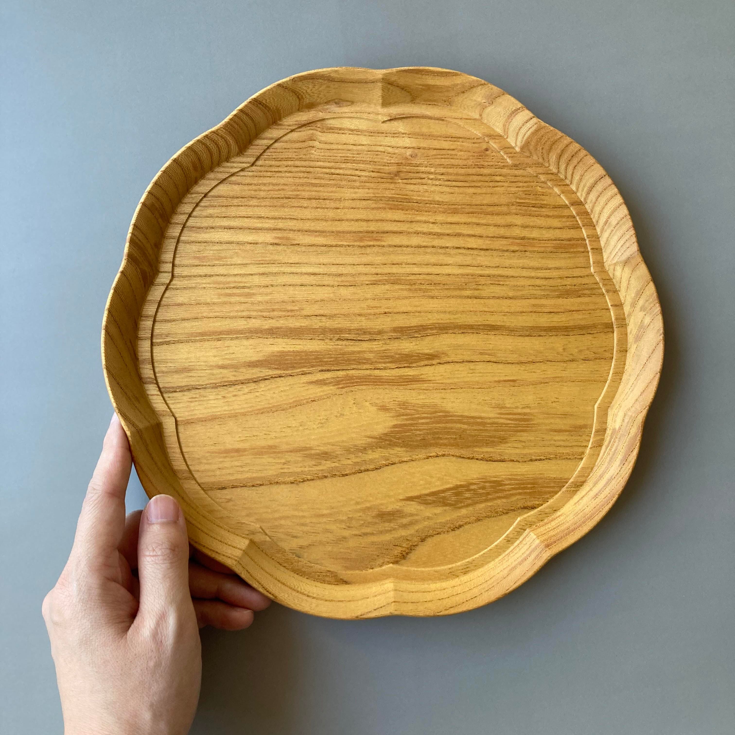 花のように麗しい、国産ケヤキの一枚板を使った輪花盆。
