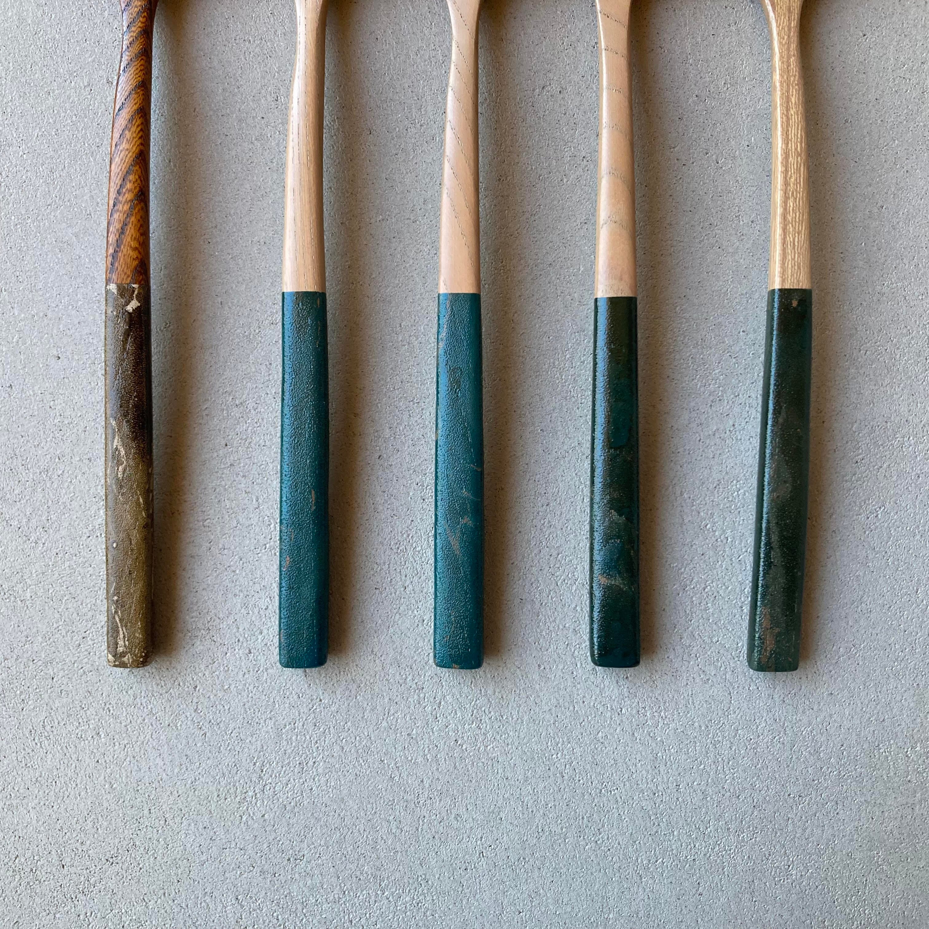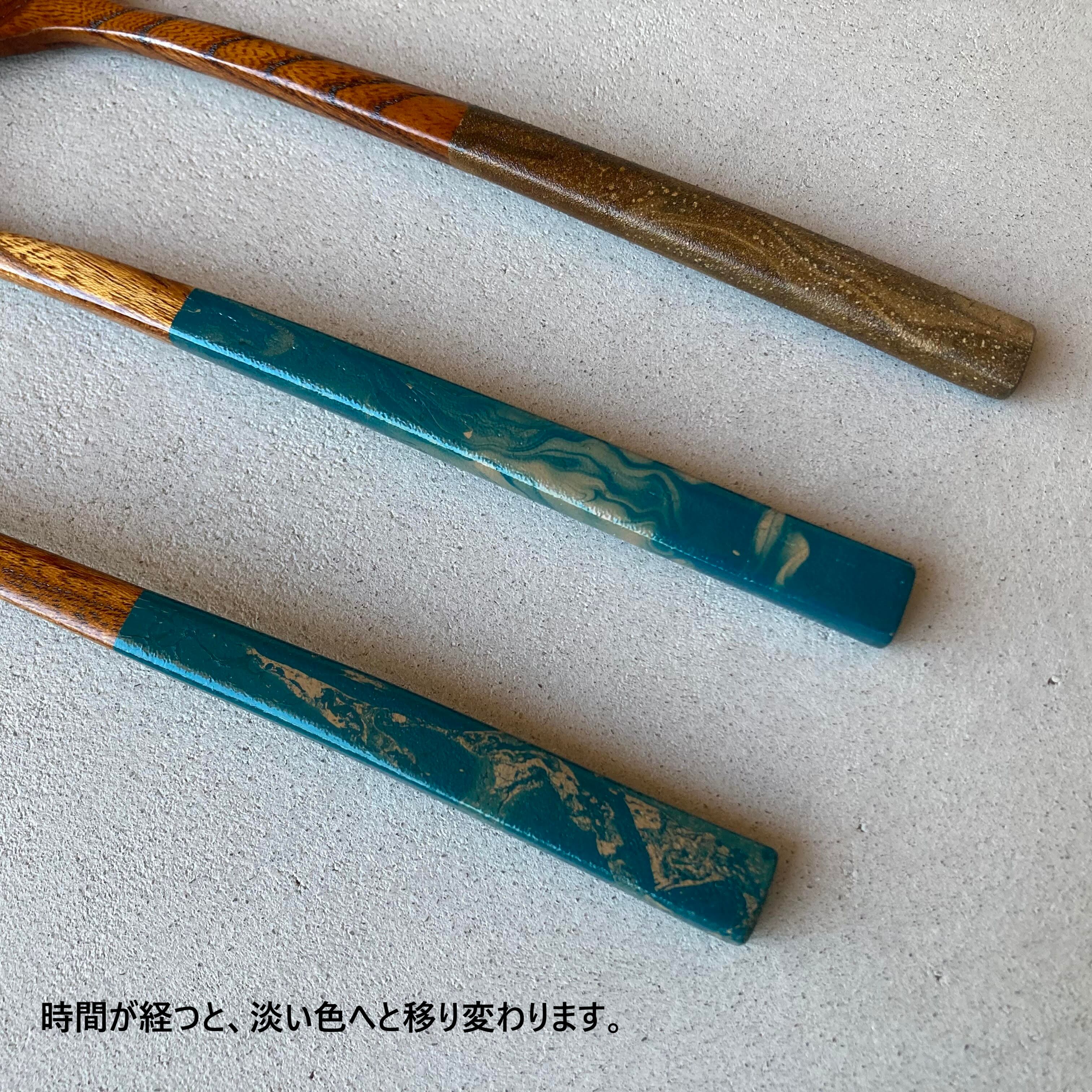 液体の中に漆を垂らしてマーブル状にし、そこにドポンと漬け込み染色する手法は他に類を見ず、出来上がる作品は世界にひとつ、どれも一点ものです。